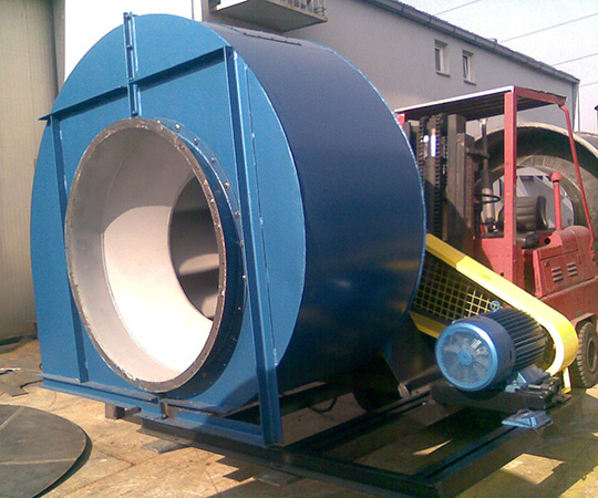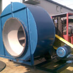 Ventilator Typ NGVM- Kapazität bis 200.000 m3/h, Druckerhöhung bis 6.000 Pa. Er wird für die Absaugung von, mit verschiedenen Dämpfen gesättigter, Luft verwendet.
